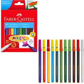 Canetinha Magic (efeito degradê). Ela possui 10 cores diferentes 2 Magic para você colorir seus desenhos. O diferencial dessa caneta para as outras, é que o corpo possui uma cor e a tampinha outra. Quando passada normalmente na folha de papel ela fica na cor do corpo da caneta, ao passar a caneta branca (magic) encima da cor, ela passa a ser da cor da tampinha, mudando de tonalidade, dando um efeito degradê lindíssimo. Vale a pena ter essa novidade no seu estojo !!