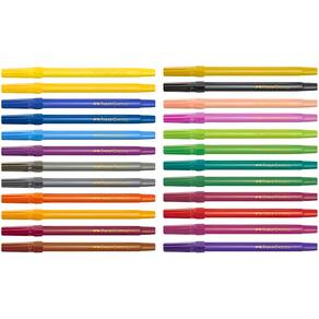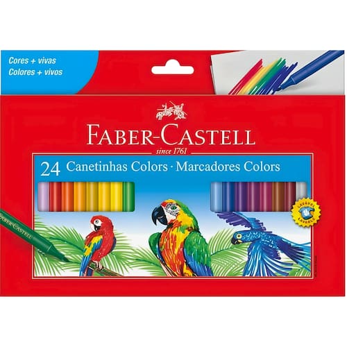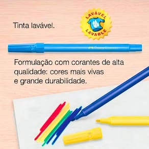 As canetinhas hidrográficas Faber-Castell estimulam a criatividade das crianças com a formulação exclusiva de corantes de alta qualidade com cores mais vivas. As canetinhas tem ponta média, a tinta é lavável e o produto é atóxico. Criatividade em dobro Formulação com corantes de alta qualidade: cores mais vivas e grande durabilidade Ponta média Tinta lavável 24 cores vibrantes