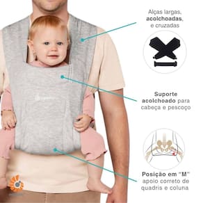 Canguru para bebê ergonômico 3 posições embrace soft knit ergobaby O canguru ergobaby embrace soft knit foi desenvolvido para oferecer o máximo de conforto tanto para o bebê quanto para os pais. Seu design inteligente permite 3 três modos de uso, adaptando-se ao crescimento do bebê desde os primeiros dias até 11kgs. Conta com 3 três posições de transporte 1- modo recém-nascido 0m+ , criança de costas ao movimento, alças mais abertas, caimento para o ombro 2- modo bebê de costas 2m+ , criança de costas ao movimento, posicione as alças sobre o ombro, não tem necessidade de abrir as alças 3- modo bebê de frente 5m+ , criança posicionada nas costas dos pais, com visão de frente ao movimento A posição ergonômica em m respeita o alinhamento natural do quadril e da coluna, promovendo um transporte saudável. Já o reforço acolchoado na cabeça e pescoço oferece segurança extra para os recém-nascidos e conforto durante cochilos. Com apenas três fivelas, o canguru é fácil e rápido de vestir, e suas alças cruzadas e cinto de sustentação distribuem o peso de forma equilibrada, proporcionando conforto para quem carrega. Compacto e ultraleve, pode ser enrolado e guardado com facilidade na bolsa de fraldas. Além disso, é lavável na máquina e feito com materiais testados dermatologicamente e certificados pelo padrão oeko-tex standard 100. Feito com malha ponte um tecido grosso de malha dupla , macio, confortável que aconchega o bebê em todas ocasiões. Ergobaby embrace soft knit transforma cada passeio em um momento de vínculo, leveza e praticidade. Principais características: - idade recomendada: de 0 a 2 anos 3 kg a 11 kg aprox. - três 3 posições de transporte - recém-nascido 0m+ , frente 2m+ , costas 5m+ - tecido com malha dupla, macio e confortável - ultraleve e compacto: pode ser enrolado e guardado na bolsa de fraldas. - ergonômico: posição em m que apoia corretamente quadris e coluna do bebê. - conforto para o bebê: suporte acolchoado para cabeça e pescoço, ideal até mesmo para recém-nascidos. - conforto para os pais: alças largas e cruzadas com cinto de sustentação que distribuem o peso. - fácil de usar: sistema com 3 fivelas, simples de vestir e ajustar. - amamentação prática: permite amamentar com privacidade e segurança, mesmo em movimento. - lavável na máquina: fácil de higienizar - material seguro: certificado oeko-tex standard 100: livre de substâncias nocivas. - disponível em 3 cores: preto, bege, cinza Especificações técnicas: - conteúdo da embalagem: 1 canguru embrace soft knit ergobaby - peso: 0,66 kg - peso suportado: 3 a 11 kg - dimensões do produto aberto: largura 55,0cm x altura 50,0cm aprox. - peso: 0,582 kg - material: 92% poliéster 8% elastano - : 12 meses contra defeito de fabricação pelo fabricante - referência do fabricante: bcemablk/ bcemacrm/ bcemasftgry - ean: 1916530017915/ 1220000203464/ 1220000208551 - marca: ergobaby Imagens meramente ilustrativas, as cores e estampas podem variar de acordo com o lote do fabricante.