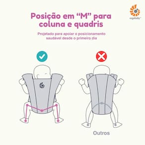 - Posição ergonômica em M: garante o alinhamento saudável dos quadris em todas as formas de uso.