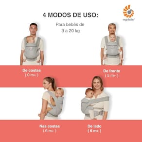 Canguru para bebê ergonômico 4 posições omni deluxe mesh ergobaby Descubra o canguru ideal para pais modernos que não abrem mão de conforto, segurança e versatilidade. O ergobaby omni deluxe mesh é a escolha perfeita para quem busca um canguru ergonômico para bebê, combinando design sofisticado, respirabilidade superior e praticidade no dia a dia. Perfeito para recém-nascidos até a primeira infância de 3 kg a 20 kg aprox. , acompanha cada fase do crescimento com suporte e estilo. Conta com 4 quatro posições de transporte 1- modo de costas 0m+ , criança de costas ao movimento 2- modo de frente 5m+ , criança de frente ao movimento 3- modo nas costas 6m+ , criança posicionada nas costas dos pais, com visão de frente ao movimento 4- modo de lado 6m+ , criança encaixada de lado aos pais, tendo visão ao movimento. Tecnologia softflex mesh com a malha mais respirável 100% poliéster tecido de alta ventilação garante frescor durante todo o dia, mesmo nos climas mais quentes. Seu bebê permanece confortável e protegido, enquanto o suporte ajustável para cabeça e pescoço proporciona o alinhamento ideal desde os primeiros meses. Capuz que protege a criança contra o sol e o vento e garantindo mais privacidade durante a amamentação. Para maior segurança em passeios ao entardecer ou à noite, ideal para passeios, viagens e momentos ao ar livre. Funcionalidade é outro destaque do omni deluxe. Com áreas de armazenamento, incluindo bolsa removível, bolso traseiro com zíper, bolsos elásticos e laterais, e clip para prender a chupeta, você terá tudo o que precisa sempre à mão. Prático e resistente, o ergobaby omni deluxe é lavável à máquina. Para maior durabilidade, recomenda-se prender todos os ganchos, fivelas e fechos antes da lavagem. Com ele, cada passeio se transforma em uma experiência segura, confortável e inesquecível para pais e bebês. Principais características - idade recomendada: de 0 a 4 anos aprox. - 3 kg a 20 kg aprox. - 4 quatro posições de transporte - voltado para dentro 0m+ , voltado para fora 5m+ , transporte no quadril 6m+ e transporte nas costas 6m+ - tecnologia softflex mesh: tecido de malha macio e respirável - classificado como nº 1 em fluxo de ar para conforto durante todo o dia - posição ergonômica em m: garante o alinhamento saudável dos quadris em todas as formas de uso. - ajustável ao crescimento do bebé, sem necessidade de - conforto superior: alças acolchoadas com marcações indicadoras para facilitar o ajuste e cinto lombar ergonômico que distribui o peso e protege a região inferior das costas - capuz para proteção contra o sol e vento - almofada de apoio para a cabeça e o pescoço - design adequado para amamentação discreta em qualquer lugar - mini bolsa removível com zíper - suporte lombar ergonômico para aumentar o conforto e reduzir a tensão nas costas - controles deslizantes intuitivos para mudanças de posição voltadas para dentro e para fora sem esforço - bolsos de armazenamento para manter seus itens essenciais ao seu alcance - lavável à máquina: fácil de cuidar e manter limpo - disponível em 5 cores: cinza/ preto/ azul/ bege/ cinza grafite Especificações técnicas: - conteúdo da embalagem: 1 canguru omni deluxe mesh ergobaby - dimensões do produto aberto: l 43,0cm x a 50,0cm aprox. - composição/material: 100% poliéster softflex mesh - peso: 1,560 kg - : 12 meses contra defeitos de fabricação pelo fabricante - código do fabricante: bcodmprlgry/ bcodmonyx/ bcodmmidblu/ bcodmnatbge/ bcodmgraph - ean: 1220000209916/ 1220000209930/ 1220000209947/ 1220000209954/ 1220000209923 - marca: ergobaby Imagens meramente ilustrativas. As cores e estampas podem variar de acordo com o lote do fabricante.