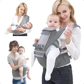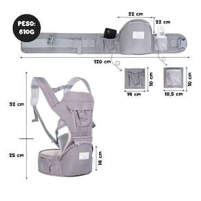 O canguru possui 12 posições, trazendo a possibilidade de utilizá-la desde o nascimento do bebê até os seus 36 meses. Além disso, é 3 em 1, pois é possível utilizá-la completa, só o banquinho de apoio ou com o neném deitado.