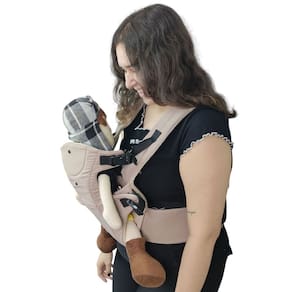 Ajuste o bebê da posição desejada e depois ajuste ao seu corpo com as alças e fivelas de segurança bem-posicionadas rente ao corpo, fazendo com que fique firme e seguro.