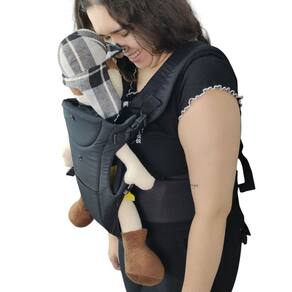 Ajuste o bebê da posição desejada e depois ajuste ao seu corpo com as alças e fivelas de segurança bem-posicionadas rente ao corpo, fazendo com que fique firme e seguro.
