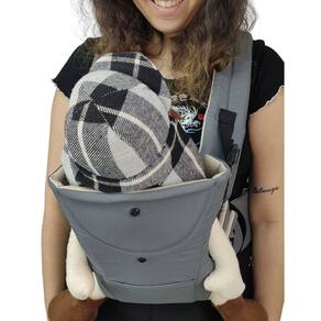 Ajuste o bebê da posição desejada e depois ajuste ao seu corpo com as alças e fivelas de segurança bem-posicionadas rente ao corpo, fazendo com que fique firme e seguro.