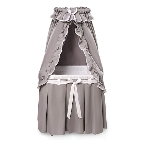 Badger Basket Majesty Canopy Berço, berço de balanço com colchão, roupa de cama e armazenamento, oval cinza/branco - Funcional e elegante: monte facilmente nosso lindo berço de dossel para bebês perto de sua cama ou no berçário. Para uso até 9 kg, 3-4 meses, ou até que o bebê possa empurrar para cima, rolar ou sentar sem ajuda (o limite que ocorrer primeiro). - Design de toldo elegante: nosso dossel de armação de metal bonito e durável é projetado para imitar um berço de bebê vintage que cria um espaço aconchegante de 76 cm C x 38 cm L x 24 cm A. O berço também pode ser montado sem o dossel. - Suporte de balanço 2 em 1: as rodas giratórias de travamento em nosso berço de balanço podem ser viradas para balançar o berço como um berço ou deixadas para baixo para mantê-lo estacionário. - PACOTE DE CAMA COMPLETO: Este berço de qualidade de herança com dossel inclui um forro/saia lavável, lençol com elástico e almofada de espuma, para que você tenha tudo o que precisa para montar. - Armazenamento conveniente: nosso berço de berço possui uma cesta de armazenamento integrada, oferecendo uma solução fácil para manter itens essenciais como fraldas e lenços à mão.