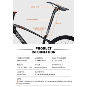 - Especificações do torque '' colar do selim'' - Determinado por sua fabricação do quadro/colar do selim ''torque de travamento recomendado 5 Nm''