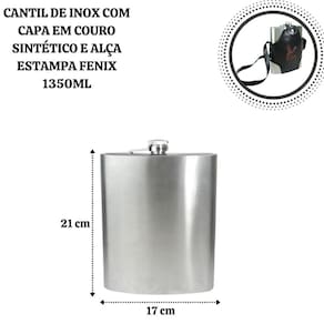 CANTIL DE INOX COM CAPA EM COURO SINTÉTICO E ALÇA ESTAMPA FENIX 1.350 ML- GDR0251.