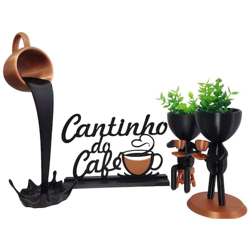 Cantinho café flutuante derramando café dolce gusto pt/cobre Nosso kit acompanha: 1 xícara flutuante com aproximadamente 24,8cm de altura 1 base do letreiro removível com aproximadamente 17cm de largura e 11cm de altura 1 bob sentado bebendo café com aproximadamente 13cm s/considerar as plantas 1 bob em pé bebendo café com aproximadamente 15cm s/considerar as plantas Obs. já acompanha as plantinhas artificiais Letreiro com base removível, possibilitando seu uso tanto em pé quanto fixado na parede com fita dupla face, se preferir. Obs. Não acompanha fita. O material empregado é o pla poliácido láctico , um plástico biodegradável e seguro para a saúde. Nosso produto chega montado, apenas o letreiro que vai solto da base, mas é simples o encaixe. Cuidados e conservação: as peças podem apresentar alterações quando expostas a altas temperaturas ou à luz solar intensa por longos períodos. do vendedor: 3 meses Marca: Não Informado Ean: 7890871303910