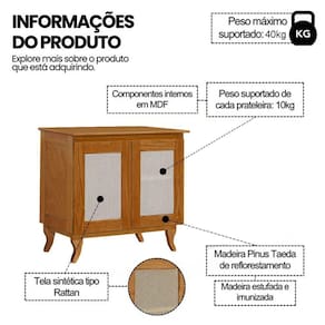 AS IMAGENS SÃO MERAMENTE ILUSTRATIVAS E PODEM SOFRER VARIAÇÕES DE COR E PEQUENOS DETALHES DE ACORDO COM O SEU MONITOR, ILUMINAÇÃO DO AMBIENTE E ATÉ MESMO A SUA PERCEPÇÃO VISUAL.Cantinho do Cafà com 2 Portas em Madeira MaciÃa e Tela Indiana - Castanho