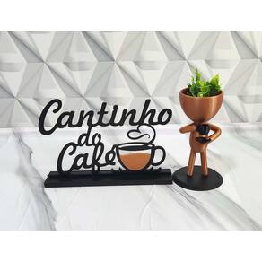 Cantinho do café com vaso bob em pé robert plant cobre preto Composição do kit: 1 base do letreiro removível com aproximadamente 17cm de largura 1 bob em pé bebendo café com aproximadamente 13cm s/considerar as plantas Obs. Já acompanha as plantinhas artificiais