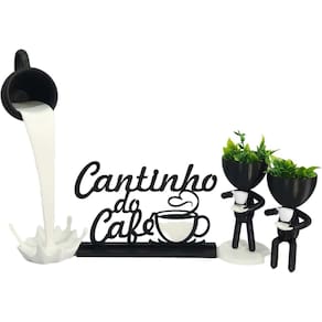 Cantinho do café flutuante derramando café dolce gusto pt/br Nosso kit acompanha: 1 xícara flutuante com aproximadamente 24,8cm de altura 1 base do letreiro removível com aproximadamente 21cm de largura e 13cm de altura 1 bob sentado bebendo café com aproximadamente 13cm s/considerar as plantas 1 bob em pé bebendo café com aproximadamente 15cm s/considerar as plantas Obs. Já acompanha as plantinhas artificiais Letreiro com base removível, possibilitando seu uso tanto em pé quanto fixado na parede com fita dupla face, se preferir. Obs. Não acompanha fita. O material empregado é o pla poliácido láctico , um plástico biodegradável e seguro para a saúde. Nosso produto chega montado, apenas o letreiro que vai solto da base, mas é simples o encaixe. Cuidados e conservação: as peças podem apresentar alterações quando expostas a altas temperaturas ou à luz solar intensa por longos períodos. do vendedor: 3 meses Marca: Não Informado