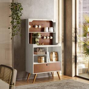 Design Retrô Sofisticado: O efeito ripado e os pés em madeira trazem um visual moderno e elegante. Ótima Capacidade de Armazenamento: Com prateleiras e porta basculante, mantém tudo organizado. Versatilidade de Uso: Perfeito para cantinho do café, bar ou até mesmo um espaço decorativo. Durabilidade e Resistência: Produzido com materiais de alta qualidade para maior vida útil. Tamanho Compacto: Ideal para ambientes pequenos sem comprometer o espaço.Observações Importantes- Produto não deve ser exposto diretamente ao sol, calor ou umidade excessiva.- Recomenda-se limpeza apenas com pano seco ou levemente umedecido; evite produtos abrasivos.- O produto pode apresentar variação de tonalidade conforme o monitor ou dispositivo.- Imagens meramente ilustrativas; objetos de decoração não acompanham o údo da Embalagem- 1 Cantinho do Café Rubi ? Movelove- 1 Kit de Montagem- 1 Manual de InstruçõesAtributos do ProdutoModelo: Rubi