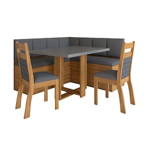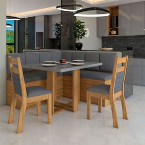 O(a) Canto Alemão AMarromia com 2 Cadeiras Marrom/Cinza Brilho/Veludo Grafite - Loja é produzido em MDF e MDP na escala de brilho Semi-Brilho, e possui um grau de dificuldade de montagem: Médio.