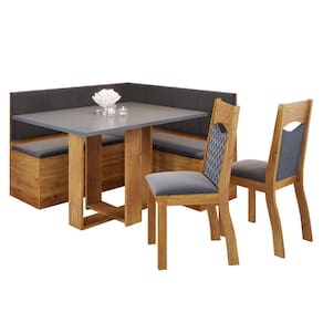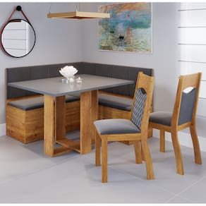 O canto alemão com baú é uma peça chave para otimizar espaços e trazer conforto à sala de jantar, perfeito para famílias que valorizam funcionalidade. Com um design acolhedor, ele oferece um local ideal para refeições, além de servir como armazenamento prático. As duas cadeiras Pietra, feitas em MDP/MDF, complementam o conjunto com um toque moderno e elegante. Seus assentos em espuma D26enbsp;garantem conforto, tornando cada refeição um momento agradável e relaxante. O canto alemão convida as interações mais próximas, promovendo conversas descontraídas entre amigos e familiares. A combinação de materiais garante durabilidade e resistência, ideal para o uso diário. Com esse móvel, a sala de jantar se torna um espaço multifuncional, onde é possível desfrutar de refeições e até de um bom livro. A estética do canto, aliada ao conforto das cadeiras, transforma o ambiente em um verdadeiro refúgio. É a escolha perfeita para quem busca unir estilo e praticidade no lar