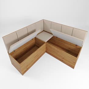 O Canto Alemao com Bau Syrah com 2 Cadeiras Milao Viero une design inteligente e alta funcionalidade para transformar seu ambiente. Gracas ao formato articulado, ele atua como um divisor de espacos, aproveitando cada centimetro com elegancia. A peca acomoda confortavelmente de 3 a 5 pessoas, ideal para encontros em familia ou recepcoes com amigos, estrutura em MDP e tampo de MDF de 18 mm, cujos cantos arredondados garantem seguranca e um visual sofisticado. As cadeiras, fabricadas em madeira de eucalipto, oferecem durabilidade e firmeza. O estofado, em tecido linho, adiciona um toque aconchegante e refinado. Alem do charme, o bau integrado oferece um compartimento extra para manter utensilios e objetos do dia a dia sempre a mao. Perfeito para cozinhas, salas de jantar e areas gourmet, este conjunto completo destaca-se pela versatilidade, conforto e estilo, valorizando qualquer decoracao.