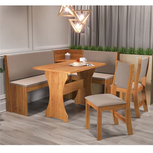 Canto Alemão Fritz Com 2 Cadeiras Sol Cobre/Tabaco - Casa Giulia - Marrom