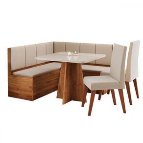 O(a) Canto Alemão Gourmet com 2 Cadeiras e Vidro Marrom/Off White/Linho Bronze - Viero Móveis é produzido em MDF, MDP e Eucalipto na escala de brilho Semi-Brilho, e possui um grau de dificuldade de montagem: Médio.