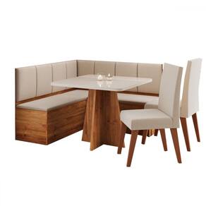 Canto Alemão Gourmet com 2 Cadeiras Marrom/Blonde/Linho Bronze - Viero Móveis - Bege