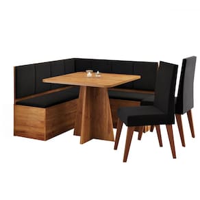 O(a) Canto Alemão Gourmet com 2 Caderias Marrom/Veludo Preto - Viero Móveis é produzido em MDF, MDP e Eucalipto na escala de brilho Semi-Brilho, e possui um grau de dificuldade de montagem: Médio.