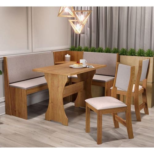 Se voce esta procurando uma opcao moderna e elegante para mobiliar sua sala de jantar, o Canto Alemao Viero com 2 cadeiras e uma excelente escolha. Com um design sofisticado e acabamento em madeira, este conjunto de mesa e cadeiras ira adicionar estilo e conforto ao seu ambiente. Este conjunto e ideal para quem busca um produto de qualidade, durabilidade e beleza. Com capacidade para ate 6 pessoas, e perfeito para reunir amigos e familiares em momentos especiais. Adquira agora o Canto Alemao Viero com 2 cadeiras e transforme sua sala de jantar em um ambiente sofisticado e aconchegante.