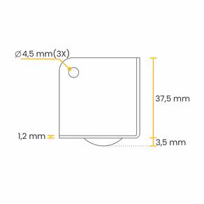 Material: Aço Carbono Acabamento: Zincado Azulado Furos de Fixação: Ø 4,5 mm Altura Máxima: 37,5 mm
