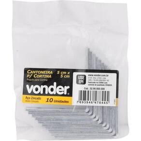 Cantoneira Para Cortina 04x04cm Zincado Cce0044 Com 4 Pç Vonder Conteúdo da embalagem 1 Pacote com 10 cantoneiras Aplicações e dicas de uso Indicada para suporte de trilho para cortina Destaques e diferenciais Possui acabamento zincado, proporcionando maior resistência à oxidação/corrosão DETALHES TÉCNICOS