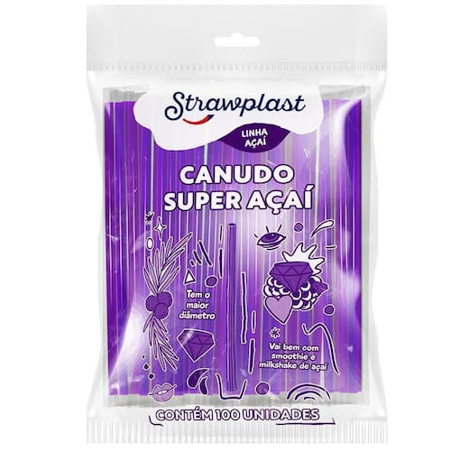 1. Quantos canudos vêm no pacote? - O pacote contém 100 unidades do Canudo Super Açaí Strawplast Roxo 10mm.