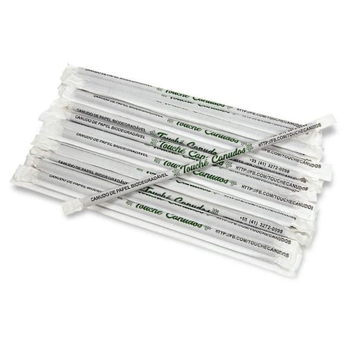 Dimensões: 197mmx6mm.Cor: Branco.Estudos preveem que até 2050 teremos mais plásticos do que peixes no oceano. Isso se dá pelo fato de que mais de 8 toneladas de plásticos são descartados no oceano a cada ano, esse material demora no mínimo 1 século para se decompor e apenas 14% de todo o plástico do mundo é reciclado.Com essas notícias e estudos sendo apresentados, o mundo precisa mudar, precisa readequar velhos hábitos e prezar pela preservação do planeta em que vivemos.A Touché Canudos busca trazer uma solução para o alto consumo de canudos plásticos material que não chega a reciclagem, prejudica a vida marinha pelo seu formato e é altamente poluente nos oceanos.Nossos canudos biodegradáveis de papel levam cerca de 90 dias para se decompor e mesmo assim apresentam boa durabilidade durante o uso. Oferecem a praticidade do material descartável, com o menor impacto ambiental.Repense seus hábitos. Reduza seu consumo. Substitua.