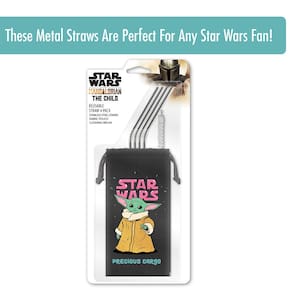 - ? STAR WARS MANDALORIAN THE CHILD aparece nesta conveniente bolsa de tecido com cordão que contém 4 canudos de aço inoxidável e uma escova de limpeza.