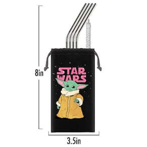 - ? PRESENTE FÁCIL E CONVENIENTE PARA FÃS DE STAR WARS — pegue sua adorável sacola de cordão com The Child em restaurantes, bares, festas, no carro e muito mais para saborear suas bebidas com facilidade. Use a escova longa de náilon para limpar o canudo ou até mesmo guardá-lo na bolsa até poder jogá-lo na máquina de lavar louça