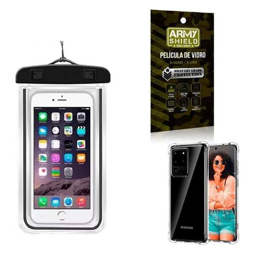 Conteúdo da embalagem: 1x - capinha bolsa prova d'água para celular impermeável. 1x - cordão para pescoço.