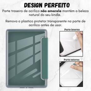 Capa acrílico para kindle 12 geração 6.0 rs23cv + película Cor: verde claro com revestimento interno de microfibra macia, essa capa mantém a tela do seu kindle protegida contra riscos, enquanto o fechamento magnético e as bordas reforçadas garantem uma proteção robusta contra quedas e impactos. e agora, uma novidade incrível: a parte traseira de acrílico transparente mantém a beleza natural do seu kindle sem amarelar com o tempo o design elegante realça o dispositivo sem comprometer a proteção. Lembre-se de remover o plástico protetor antes do primeiro uso. além do conforto, você ganha em praticidade com a função auto sleep, que liga a tela ao abrir e desliga ao fechar, ajudando a economizar a bateria do kindle. ---------------- Atenção ---------------- Pedimos que confira o modelo do kindle antes da compra Compatível apenas com os modelos: Novo kindle 12 geração, 6.0 polegadas 2024 - modelo rs23cv ------------------ ------------------ a capa possui a função auto sleep Como ela funciona R: sim a função auto sleep economiza a bateria do seu kindle: ao abrir a capa, a tela liga automaticamente, e ao fechar, ela desliga. Praticidade e economia de energia em um só recurso. o fechamento magnético é seguro R: com certeza o fechamento magnético mantém a capa bem fechada. a capa protege contra quedas e impactos Sim, a capa possui bordas reforçadas e encaixe perfeito, proporcionando excelente proteção contra quedas e impactos, além de minimizar o risco de danos. posso usar capa junto com uma película R: sim, a película é imperceptível e complementa perfeitamente o uso de uma capa protetora. a parte traseira de acrílico amarela com o tempo R: não o acrílico transparente foi projetado para manter a estética do seu kindle sem amarelar. preciso remover algum plástico antes de usar R: sim para aproveitar ao máximo o visual transparente, remova o plástico protetor da parte de acrílico antes do primeiro uso. ------------------ Especificações ------------------ Revestimento interno: microfibra Parte traseira: acrílico transparente não amarela Fechamento: magnético Função: auto sleep Compatibilidade: novo kindle 12 geração, 6.0 polegadas 2024 - modelo rs23cv ------------------ Conteúdo ------------------ 1x capa protetora. 1x película fosca. 1x kit limpeza. Anúncio referente a capa Acessórios que ambientam as fotos não inclusos. ------------------ Apresentação: ------------------ - qualidade garantida. - atendimento qualificado. - enviamos para todo o brasil. - compra garantida. - despachamos em até 1 dia útil após confirmação do pagamento Garantimos a devolução por arrependimento em até 7 dias, após o recebimento e de 15 dias contra defeitos de fabricação. Marca: Não Informado Ean: 7796495265767