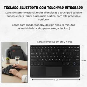 Capa alça + teclado sem fio + mouse para samsung a11+ x236 Cor: preto Tenha tudo o que precisa para transformar seu tablet ou notebook em uma estação completa de produtividade O kit 3 em 1 com design moderno e funcional, este conjunto é ideal para trabalho, estudos e viagens - garantindo praticidade, conforto e elegância em qualquer ambiente. A case bag transversal possui compartimentos bem distribuídos para armazenar o tablet, acessórios e carregadores com segurança, além de alça ajustável para facilitar o transporte. O teclado com touchpad tem layout abnt2 com ç e acentuação , proporcionando digitação precisa e fluida, enquanto o mouse bluetooth garante navegação rápida, sem cabos e sem complicação. Perfeito para quem busca organização, produtividade e mobilidade no dia a dia. ------------------ ------------------ O teclado tem layout abnt2 R: sim, possui o layout brasileiro abnt2, com tecla ç e acentuação completa. O mouse é recarregável ou usa pilhas R: o modelo é bluetooth recarregável, não precisa de pilhas. cabo usb incluso . A bolsa é impermeável R: é feita com material resistente à água, oferecendo boa proteção contra respingos e sujeira. Cabe tablet e notebook R: sim, a case comporta dispositivos de até 11 polegadas, além de acessórios. O teclado é compatível com android, ios e windows R: sim, compatível com tablets e notebooks que tenham conexão bluetooth. ------------------ Especificações ------------------ Layout: abnt2 com ç e acentos Tipo de conexão: bluetooth Teclado: recarregável via usb Tamanho do teclado: 24cm x 15cm. Tamanho da case bag: 35.5cm x 28cm Compatibilidade: tablets e ipads de até 11 polegadas ------------------ Conteúdo ------------------ 1x case bag transversal 1x teclado com touchpad abnt2 1x mouse bluetooth 1x cabo usb para recarga Anúncio referente a Acessórios que ambientam as fotos não inclusos. ------------------ Apresentação: ------------------ - qualidade garantida. - atendimento qualificado. - enviamos para todo o brasil. - compra garantida. - despachamos em até 1 dia útil após confirmação do pagamento Garantimos a devolução por arrependimento em até 7 dias, após o recebimento e de 15 dias contra defeitos de fabricação. Homologação Anatel: 079902113999