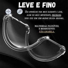 As bordas da capa possuem um pequeno relevo nas laterais e na câmera, evitando que a lente risque ao colocar o aparelho em cima da mesa e protegendo contra impactos. Além disso, sua alta qualidade e flexibilidade garantem que a capa não amarele ao longo do tempo, proporcionando proteção e durabilidade por muito tempo.