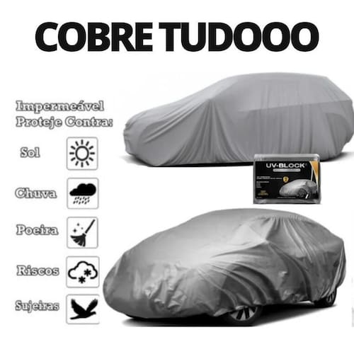 a capa de cobrir carro uv-block com forro central é ideal para você que quer proteger seu carro da melhor maneira, ela possui forração central que pega por toda a parte de cima do seu carro protegendo seu bem, desta maneira você protege e conserva a cor do seu carro protegendo-o do sol, chuvas, dejetos de animais e poeira. Elas são especificamente desenhadas para lhe oferecer a mais avançada proteção contra os seguintes notáveis inimigos: raios u. V. , sujeira, sereno, maresia, dejetos de pássaros, folhas, resíduos de árvores, fuligem, poluentes e outras partículas que podem danificar a superfície do seu veículo. Confeccionada com filme composto de 100% polietileno disposto em 02 camadas e aditivada com anti-oxidante e anti u. V. A sua coloração prateada proporciona excelente reflexão da luz solar funcionando como espelho frente aos raios solares. Material: capa polietileno uv-block