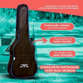 Entrega segura e ágil Total suporte no pós-vendas Capa para violão folk simples avs + palheta para violão Especificações: Marca: avs Medidas: 106x43x12 Modelo: folk simples avs sem espuma Cor: preta Características: Material: poliester Produzida em alta resistência Tecido reforçado para maior durabilidade e segurança. Compatível com: guitarra, violão clássico e violão Folk Acabamento externo: lona extra Zipper reforçado em toda a lateral do instrumento Alça de mão Alças na costa tipo mochila para carregar Bolso externo com zipper Fabricante: world bags avs Fabricado no brasil : 90 dias contra defeitos de fabricação, não incluso mau uso. Itens inclusos na embalagem: 01 capa para violão folk simples avs 01 palheta para violão Outras informações: Postaremos o produto em até 24hrs após confirmação de pagamento. Qualquer dúvida ficaremos contentes em responder. Boas compras e volte sempre Marca: Não Informado