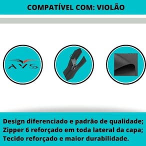 Entrega segura e ágil Total suporte no pós-vendas Capa para violão folk simples avs + palheta para violão Especificações: Marca: avs Medidas: 106x43x12 Modelo: folk simples avs sem espuma Cor: preta Características: Material: poliester Produzida em alta resistência Tecido reforçado para maior durabilidade e segurança. Compatível com: guitarra, violão clássico e violão Folk Acabamento externo: lona extra Zipper reforçado em toda a lateral do instrumento Alça de mão Alças na costa tipo mochila para carregar Bolso externo com zipper Fabricante: world bags avs Fabricado no brasil : 90 dias contra defeitos de fabricação, não incluso mau uso. Itens inclusos na embalagem: 01 capa para violão folk simples avs 01 palheta para violão Outras informações: Postaremos o produto em até 24hrs após confirmação de pagamento. Qualquer dúvida ficaremos contentes em responder. Boas compras e volte sempre Marca: Não Informado Ean: 79071001149371