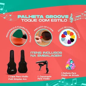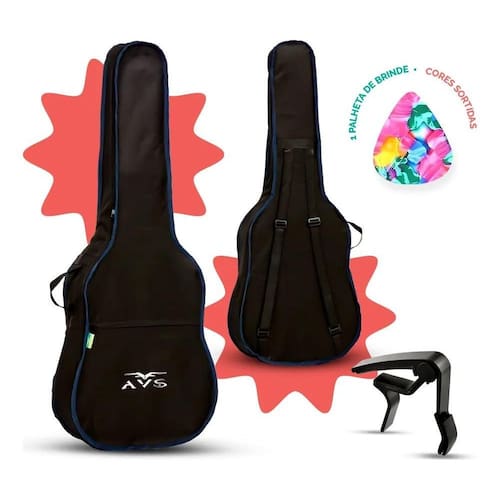 Entrega segura e ágil Total suporte no pós-vendas Itens inclusos na embalagem: 01 capa para violão folk simples avs 01 capotraste para violão Características capa avs: Marca: avs Medidas: 106x43x12 Modelo: folk simples avs sem espuma Cor: preta Material: poliester Produzida em alta resistência Tecido reforçado para maior durabilidade e segurança. Compatível com: violão clássico e violão Folk Acabamento externo: lona extra Zipper reforçado em toda a lateral do instrumento Alça de mão Alças na costa tipo mochila para carregar Bolso externo com zipper Fabricante: avs bags Fabricado no brasil Especificações capotraste: Marca: groove Modelo: cp10 Dimensões da embalagem: 16.4 x 11 x 2 cm; 140 g Cor: preta Compatível com: violão e guitarra Especificações palheta: Marca: groove Espessuras: 0.71mm Modelo: abs Cor: Palheta maciça e flexível 1 unidade Outras informações: : 90 dias contra defeitos de fabricação. Itens inclusos na embalagem: 01 capa para violão folk simples avs 01 capotraste para violão Postaremos o produto em até 24hrs após confirmação de pagamento. Qualquer dúvida ficaremos contentes em responder. Boas compras e volte sempre