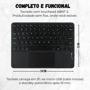 Capa bag pasta + teclado com touchpad para tablet pad 7 11.2 Cor: lilás Transforme seu tablet em uma solução prática para estudo, trabalho e lazer com este kit 2 em 1, pensado para quem busca mobilidade e conforto no dia a dia. O kit é composto por case bag em silicone, teclado bluetooth com touchpad, permitindo digitar, navegar e usar o tablet com muito mais eficiência, sem depender da tela touch o tempo todo. Ideal para quem precisa de produtividade em qualquer lugar, o teclado com touchpad oferece navegação semelhante à de um notebook, o mouse garante mais precisão e a case bag em silicone protege o tablet contra riscos, poeira e pequenos impactos do uso diário. Adquira agora seu kit completo e leve mais praticidade, ergonomia e produtividade para o seu dia a dia. Compatível com ipads, tablets android, windows e muito mais ------------------ ------------------ O teclado e o mouse funcionam é universal R: sim o kit é compatível com ipads, tablets android, windows e qualquer dispositivo com bluetooth. Precisa de aplicativo ou cabo para usar R: não basta ligar o teclado e o mouse, ativar o bluetooth do seu dispositivo e conectar. É simples, rápido e sem fios. Como faço para conectar o teclado e o mouse Ligue o botão on no teclado e no mouse. - no teclado, pressione fn + c para ativar o modo pareamento. - no seu dispositivo, ative o bluetooth e conecte aos nomes bluetooth keyboard e bluetooth mouse. Funciona com celular também R: sim, desde que o celular tenha bluetooth e suporte a dispositivos de entrada como teclado e mouse . Ideal para produtividade e praticidade ------------------ Especificações ------------------ Teclado touchpad bluetooth: Conexão: bluetooth 3.0 ou superior Alcance: até 10 metros Teclas: silenciosas e macias Ativação do bluetooth: fn + c Alimentação: via cabo usb cabo incluso Compatibilidade: ios, android, windows, ipados ------------------ Conteúdo ------------------ 1x case silicone. 1x teclado touchpad bluetooth. 1x cabo usb para recarga. 1x manual de instruções. Anúncio referente à capa silicone + teclado Acessórios que ambientam as fotos não inclusos. ------------------ Apresentação: ------------------ - qualidade garantida. - atendimento qualificado. - enviamos para todo o brasil. - compra garantida. - despachamos em até 1 dia útil após confirmação do pagamento Garantimos a devolução por arrependimento em até 7 dias, após o recebimento e de 15 dias contra defeitos de fabricação.