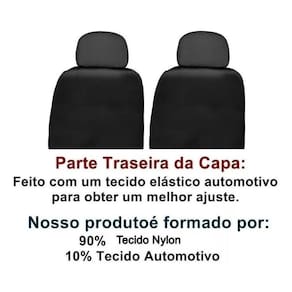 Capa Banco Automotivo Tecido Nylon Preta Volkswagen Gol 2002 Jogo Capas De Banco De Carro em Tecido Produto feito com Tecido Nylon em alta resistência e durabilidade proporcionando a você e demais passageiro o máximo de conforto e além disso agrega a beleza,e sofisticação ao seu veículo. Este produto protege os bancos de seu corro contra acúmulo de sujeiras,evita manchas,desbotamentos,rasgos e demais fatores que podem desvalorizar seu veículo. - Fabricada em Tecido Nylon Especial- Conserva os Bancos do Carro- Fixada através de botões de pressão,cordões e elásticos- Evita Proliferação de Ácaros,Fungos e Bactérias- Estilo,Conforto e Elegância para os Bancos- Alta Qualidade e Durabilidade Fácil Instalação- Facilidade na Hora da Limpeza- Tecido impermeável- Forração removível e lavável Conteúdo da Embalagem: - 2 Capas Bancos Dianteiros- 1 Capa Assento Banco Traseiro- 1 Capa Encosto Banco Traseiro- 5 Encosto de cabeça Cuidado: - Lavar somente a mão com água corrente- Secagem por gotejamento- Não alvejar e/ou branquear- Não Passar- Não limpar a seco- Não secar em tambor. Importante: - Recomendamos que a instalação seja feita por um profissional especializado e não se responsabiliza pelo mau uso do produto. Marca: Modesto Capas E Design