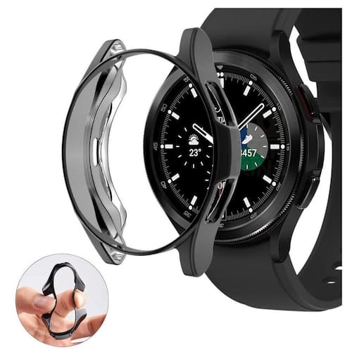 O material durável e flexível do silicone garante que a capa possa resistir ao desgaste diário e se encaixar perfeitamente ao seu Galaxy Watch4 46Mm. Além disso, a capa possui uma tela vazada, permitindo acesso completo e sem obstruções à tela do relógio, garantindo que você possa interagir com todas as funcionalidades sem restrições.