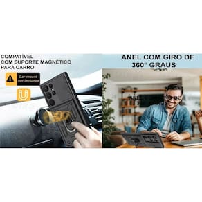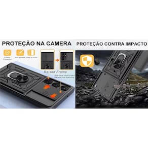 A Capinha Tem Proteção para camera, quando nao tiver usando Com suporte para Suporte veicular Magnetico Com Suporte Anel 360 graus para deixar o celular de forma adequada para assistir. Fácil Acesso A Todas Entradas Do Aparelho, Sem Ser Necessário A Remoção Da Capa Design Moderno, Protege Seu Telefone De Sujeira, Riscos E Possíveis Danos Causados Por Quedas Proteçã total contra impactos.