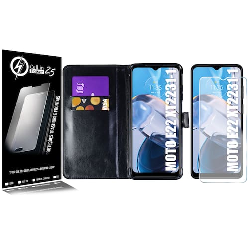Kit Proteção - 1 Capa Carteira + 1 Película de vidro comum