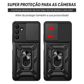Capa protetora blindada com suporte metálico giratório 360º e tampa deslizante para lente. Proteção reforçada antichoque com estrutura robusta em camadas. Compatível com suporte magnético veicular. Encaixe preciso com recortes para botões, entradas e câmera.Tipo