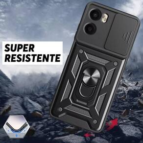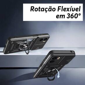 Alta proteção com alto relevo na câmera, dupla resistência anti impacto, anel de dedo com metal para aderir em imã, anel ajustável para função de base, slide cover para proteção das câmeras e privacidade. Não suporta carregamento por indução.Características
