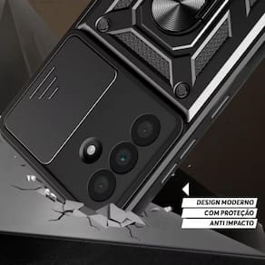 Alta proteção, dupla resistência anti impacto, anel de dedo com função de base, metal imbutido para aderir em imã, slide cover para proteção das câmeras e privacidade.Características