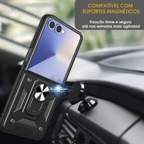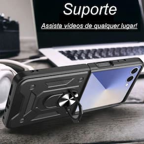 Capa protetora blindada com suporte e tampa de lente. Estrutura robusta em camadas que absorve impactos. Tampa deslizante para lente. Suporte metálico giratório 360º compatível com suporte magnético veicular. Design moderno e funcional com firmeza na pegada. Encaixe preciso com recortes para botões, entradas e câmera.Tipo
