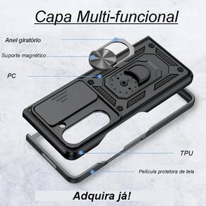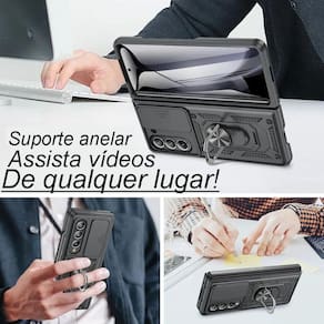 Capa Capinha Case para Samsung Z Fold 7 - Protetora Resistente Anti Impacto Queda Armadura Militar Cor:Preto Capa Protetora Blindada com Suporte e Tampa de Lente - Alta Proteção e Funcionalidade
