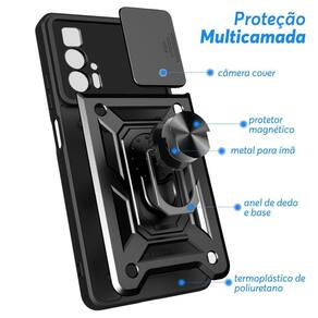 A Capa Case Motorola Moto Edge 20 Pro - Protetora Militar possui um encaixe perfeito para o seu dispositivo, garantindo que todas as funções e botões funcionem normalmente. Ela também possui um slide cover para maior proteção das câmeras, proporcionando maior privacidade e proteção.